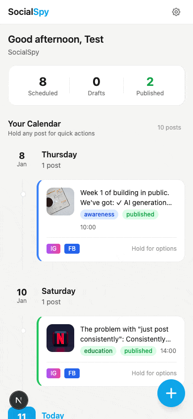 AI suggests optimal posting times based on your funnel stage.